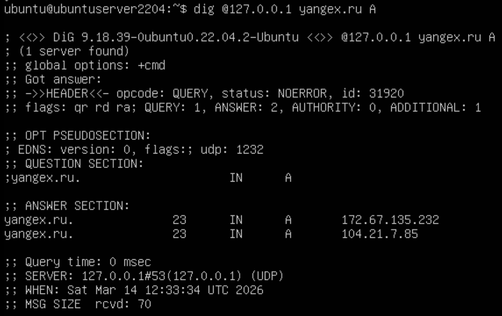 unbound - наш DNS-резолверunbound-host - упрощённая утилита для DNS-запросовdnsutils - пакет с утилитой dig (основной инструмент, которым будем пользоваться для диагностики)redis-server - внешний кэшПодробнее про каждую можно почитать тут