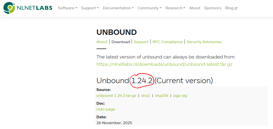 Актуальную версию можно узнать на странице загрузки nlnetlabs.nl/projects/unbound/download