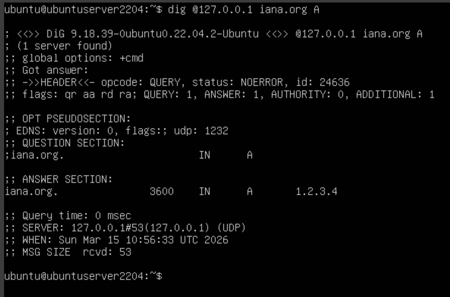 dig @127.0.0.1 iana.org A