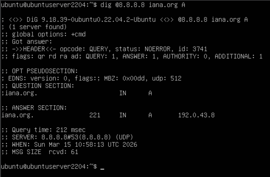 dig @8.8.8.8 iana.org A