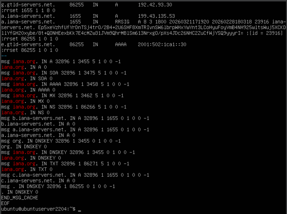 sudo unbound-control dump_cache | grep -A 20 "iana.org"